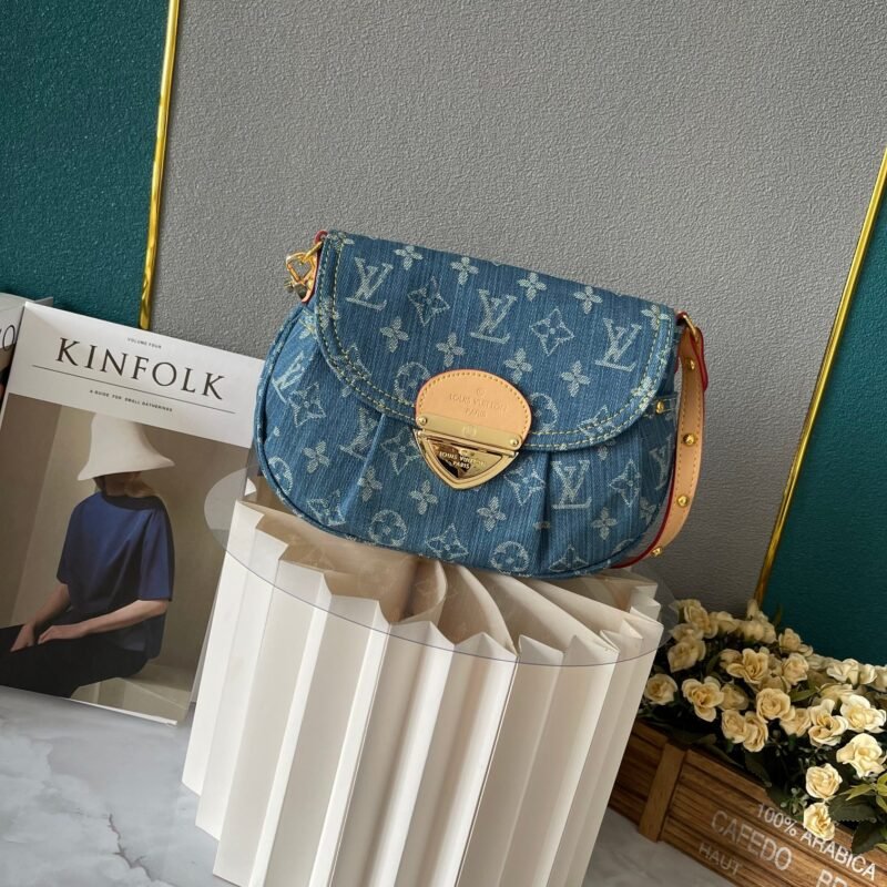 Upgraded version M46829 Sunset handbag focuses on Monogram Denim canvas. This material is made through multiple processes. Cotton yarn certified by the Global Organic Textile Standard is used to weave the Monogram pattern and then bleached. The sand washing treatment of the finished product creates a unique look, and the brand’s buckle adds a striking style. 27.0 x 18.0 x 3.0 cm.