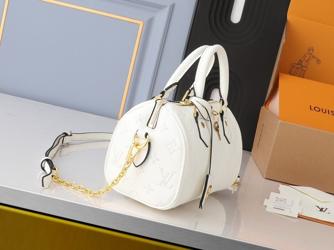Upgrade the original M11276 M58953. This Speedy Bandoulière 20 handbag is made of smooth cowhide leather and cleverly creates an optical perforation effect with Monogram embossing. Dazzling metal pieces and Monogram flower nameplates complete the refined details. The rolled leather handle and detachable and adjustable shoulder strap offer multiple carrying methods. Size: 20.5 x 13.5 x 12.0.