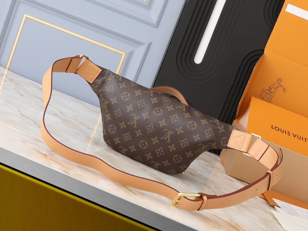 Upgrade the original M11539 M43644 Rush waist bag. This model is cleverly presented in Monogram Dust canvas with a vintage trompe-l’œil effect. The double zipper allows for convenient access to the main compartment. Exquisite decoration features the Marque L.Vuitton Déposée logo. 30.0 x 15.0 x 8.0 cm.