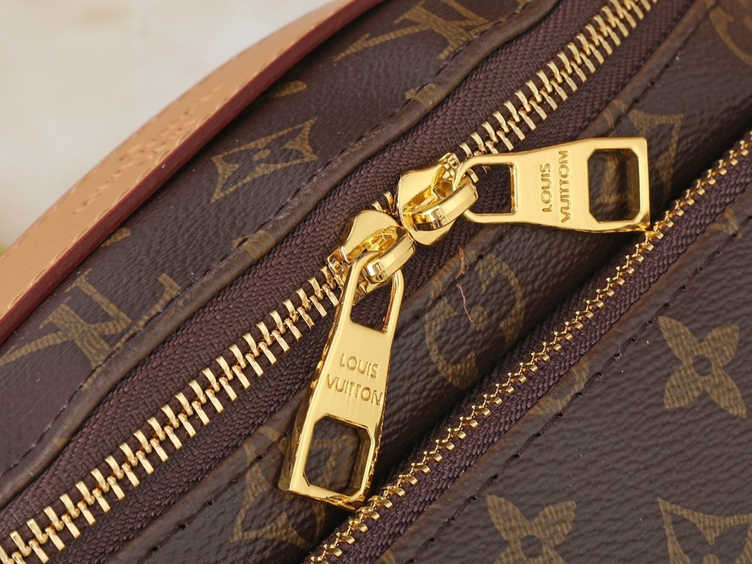 Upgrade the original M11539 M43644 Rush waist bag. This model is cleverly presented in Monogram Dust canvas with a vintage trompe-l’œil effect. The double zipper allows for convenient access to the main compartment. Exquisite decoration features the Marque L.Vuitton Déposée logo. 30.0 x 15.0 x 8.0 cm.