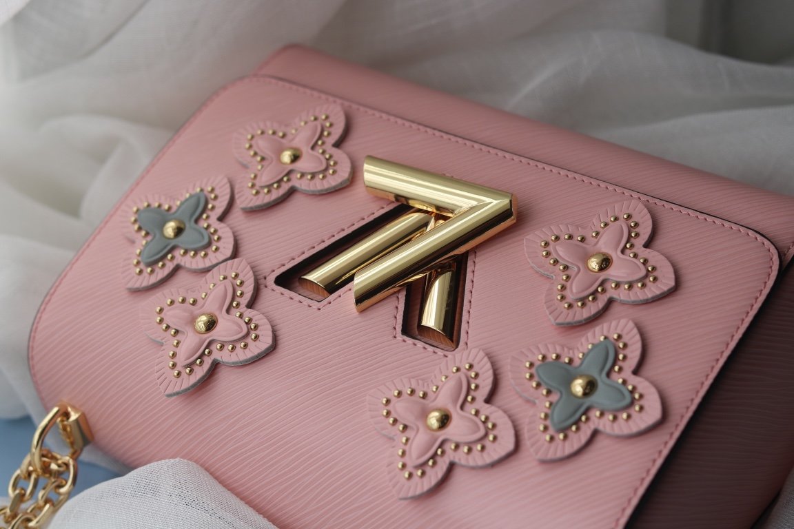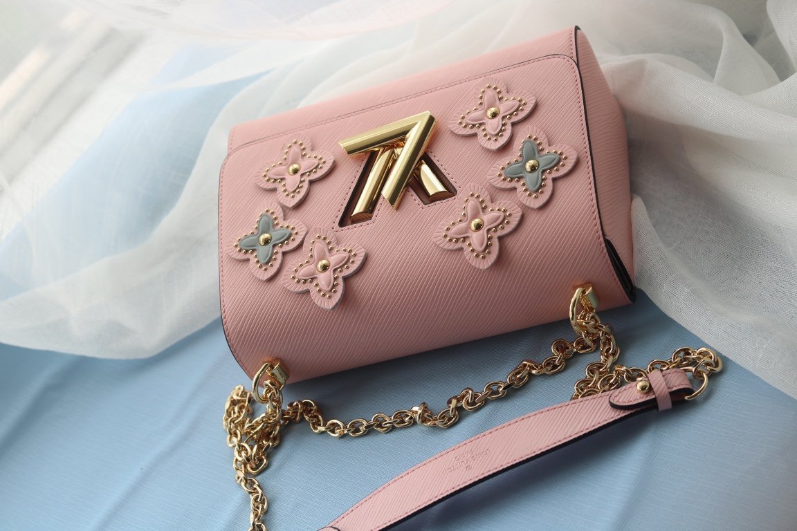 The Flower Tinsel theme in Louis Vuitton’s haute couture series is for the Twist medium handbag, adorned with a unique pattern: multiple layers of leather and studs reinterpret the Monogram flower. The rivets of the brand’s classic luggage are transformed into elegant decorations, complementing the exquisite black Epi leather body. The shape is small, and the unique curved base increases the capacity of the handbag. The adjustable chain is suitable for cross-body or elegant shoulder carrying. Medium size: 23*18*8cm.