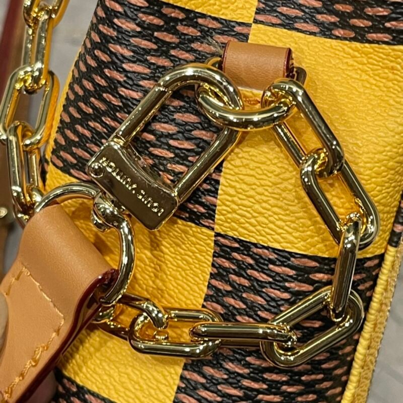 这款手袋出自品牌与Tyler的合作系列。它以Monogram Craggy帆布打造了Steamer手袋的口袋版。艺术家赋予Monogram图案手绘效果。牛皮用于修饰和加固护角、肩带和翻盖。
