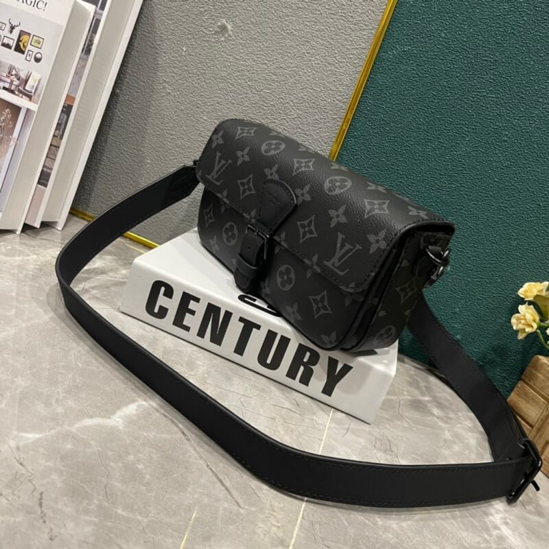 This model: The Montsouris Jm mini handbag takes inspiration from the 1994 Montsouris handbag. It is presented in a slender configuration with Monogram Eclipse canvas and features a magnetic snap for the iconic buckle on the front. It has multiple pockets and compartments. The detachable and adjustable shoulder strap is convenient for shoulder carrying or crossbody. Size: 22 × 12 × 6 cm.