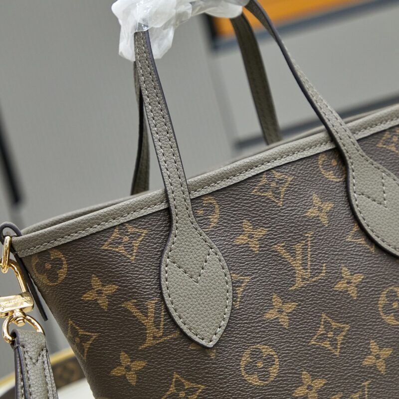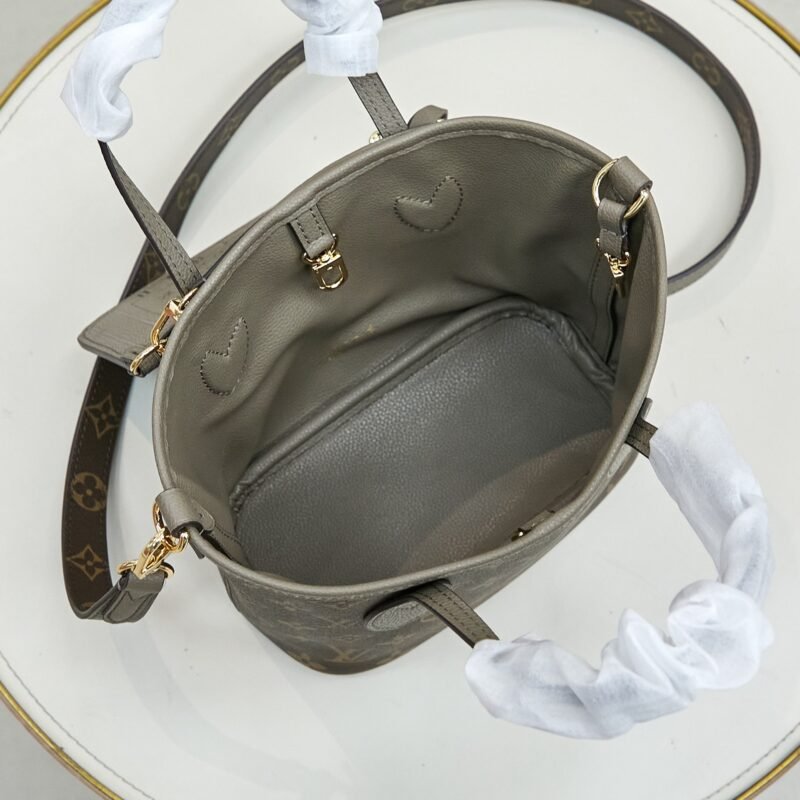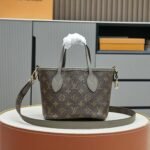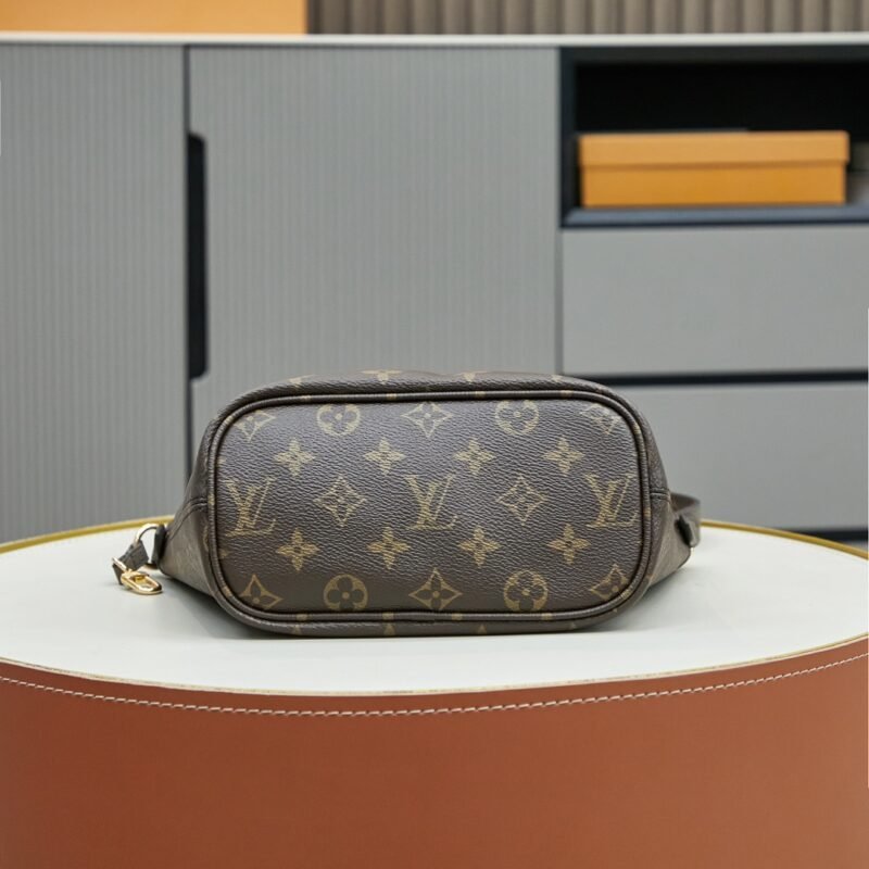 The double-sided shopping bag collection Neverfull Bandoulière Inside Out BB handbag, the iconic Neverfull handbag is reversible. The Bandoulière Inside Out BB edition is made from iconic Monogram canvas and has a grained leather on the back. It comes with a removable zippered bag that can be used alone or attached as an external pocket. Sparkling gold hardware adds that final touch. It also features removable straps that allow for crossbody. Dimensions: 24 x 14 x 9 cm