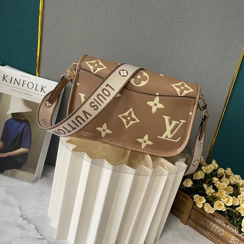 Handbag. This DIANE handbag is equipped with a leather shoulder strap (can be carried under the armpit) and an embroidered shoulder strap (can be carried on the shoulder or crossbody). Both can be removed. The capacity is sufficient for daily use. There is no pressure to hold the largest mobile phone. The belt-like buckle is a decoration. In fact, it is a magnet opening and closing, which is relatively convenient. There is a compartment in the middle for easy organization of things. There is also a zipper area where valuable items can be placed. Size: 25.0 × 9.0 × 15.0 CM.