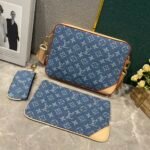 New season cotton denim brings an elegant temperament. Achieving a unique look through bleaching and sand washing processes. The pattern highlights the lines of this multi-functional mix-and-match design. In addition to having the functions of a traditional crossbody bag, it is also equipped with a detachable zipper bag and a coin purse attached to the strap. Size: 25.0 x 18.5 x 7.0 cm.