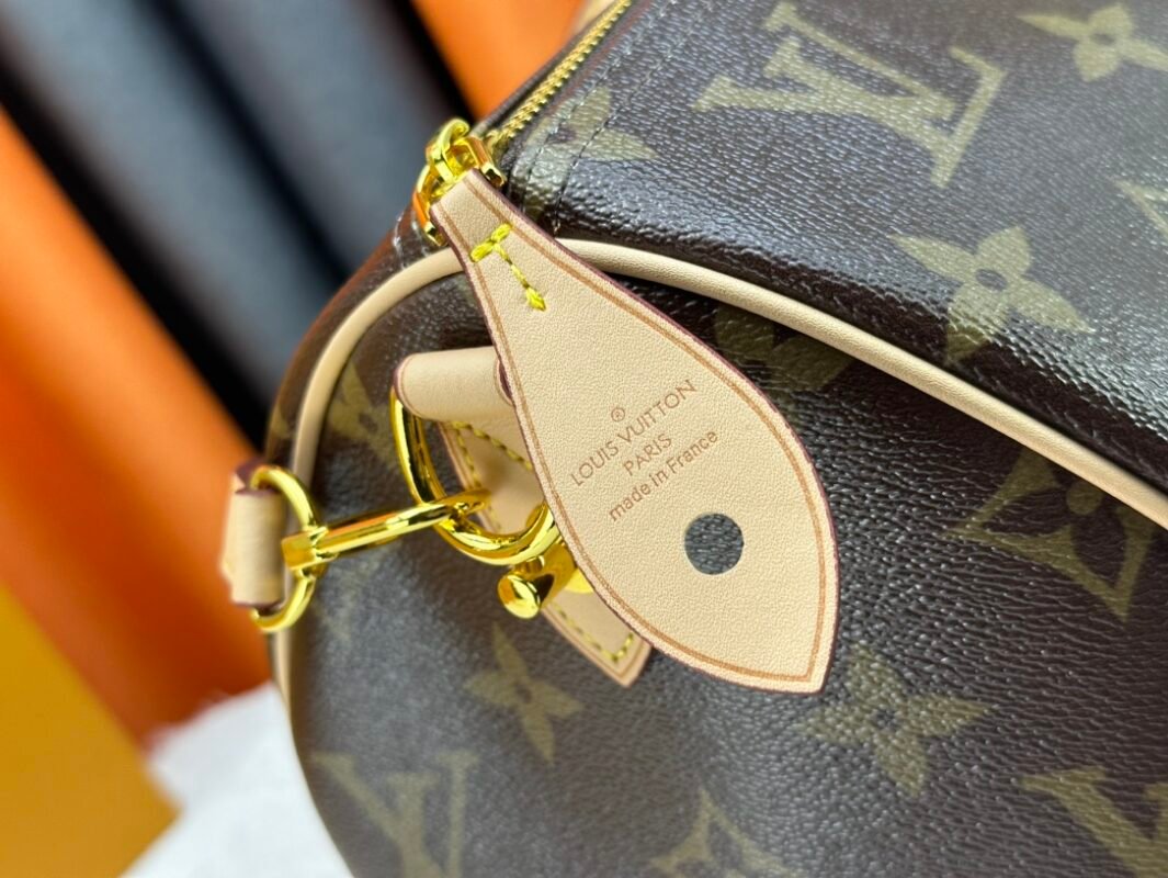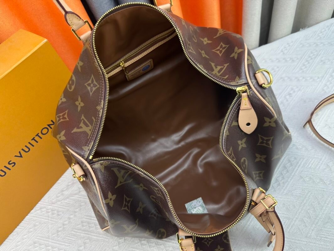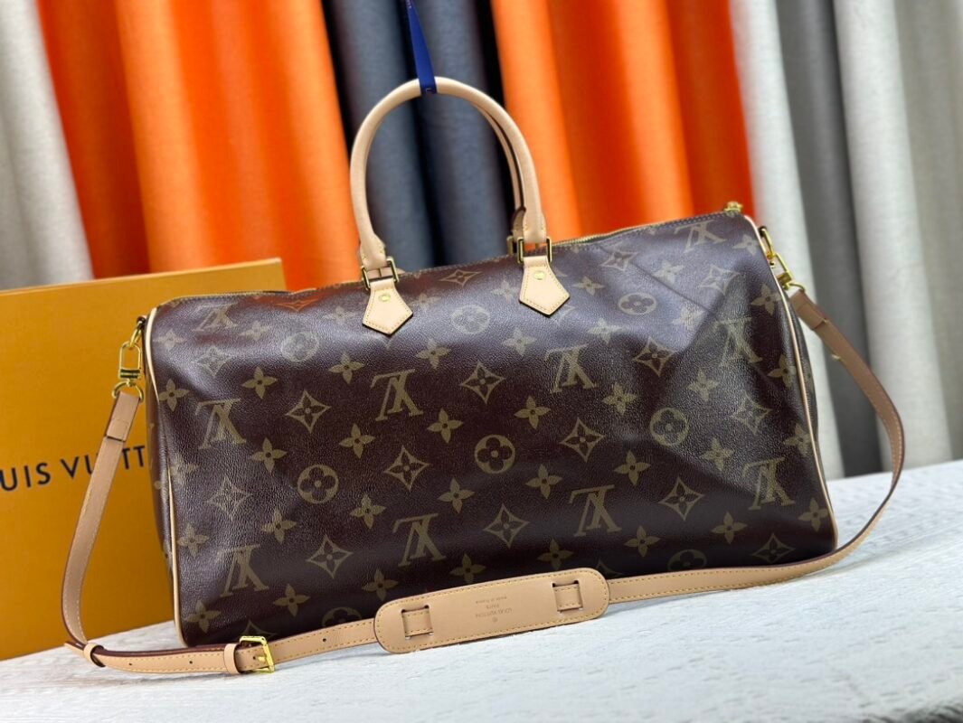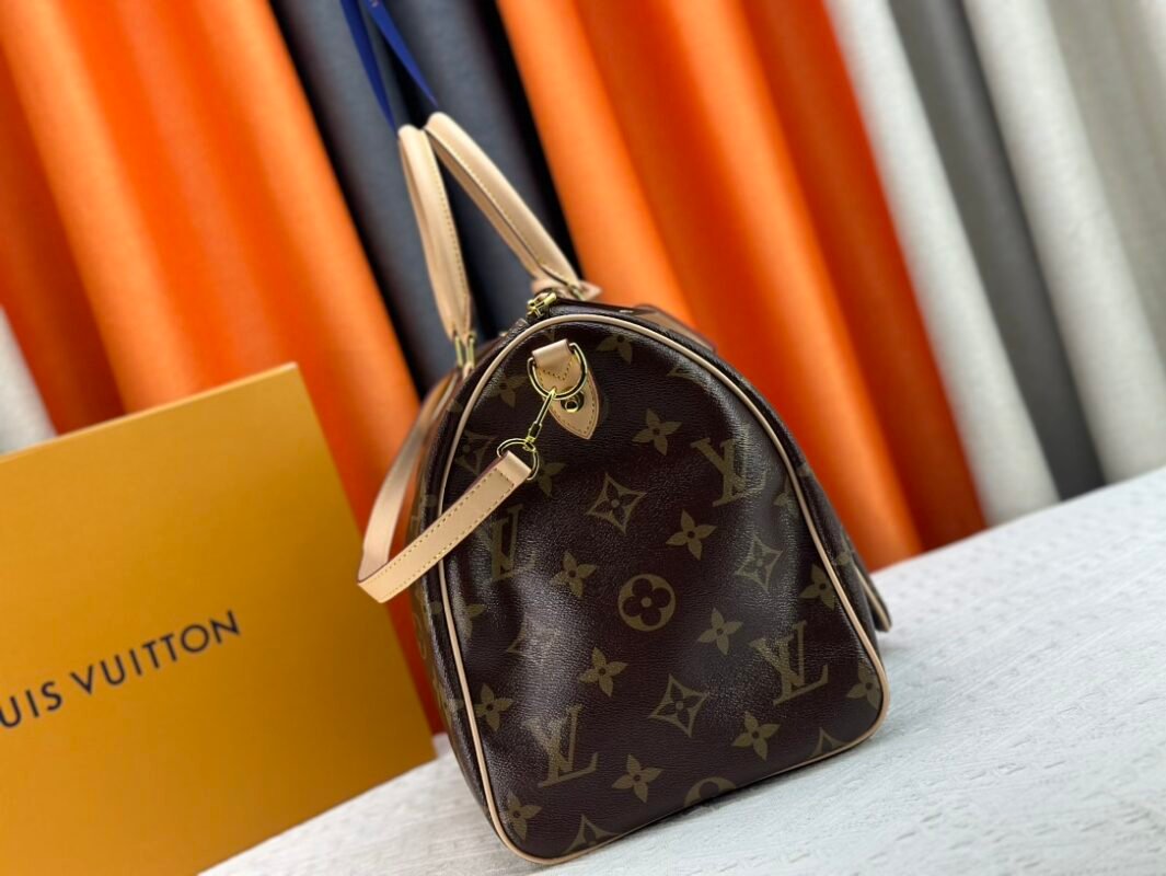 M46964 m24422 m41416 m24420 m11565 Speedy P9 Bandouliére 50 monogram leather handbag is wrapped in soft grained cowhide leather and lined with sheepskin. The silk-screened monogram pattern presents a blurred look of canvas printing, revealing the new season’s ingenuity of creative director Pharrll Williams. Size: 50x29x23cm.