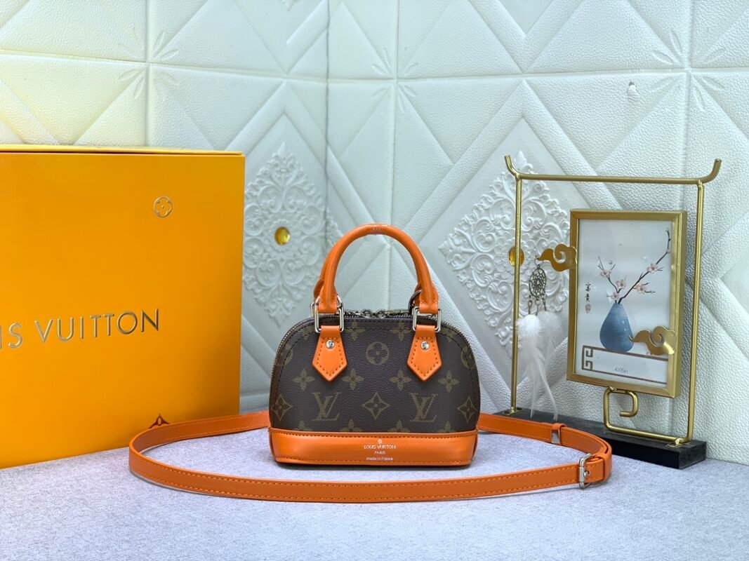 Mini shell bag series. New launch Nano Alma handbag. The Nano Alma reproduces the symbolic Alma bag in a miniature version. Louis Vuitton’s signature Monogram canvas material coordinated with decorations of natural leather. A delicately crafted item that combines traditional charm and modern functionality. When the double zipper is opened, the interior design with surprisingly ample storage space is revealed. With two leather handles and an adjustable and detachable shoulder strap, multiple styles can be created.