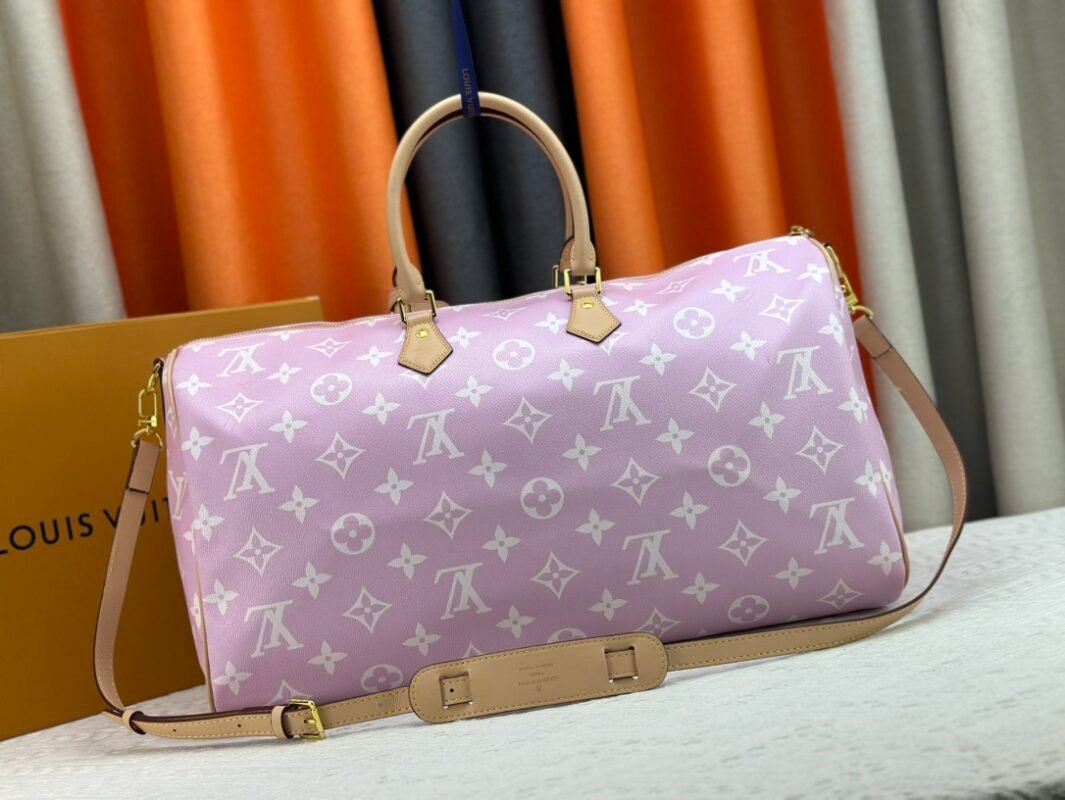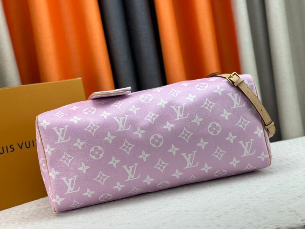 M46964 m24422 m41416 m24420 m11565 Speedy P9 Bandouliére 50 monogram leather handbag is wrapped in soft grained cowhide leather with lambskin lining. The silk-screened monogram pattern presents a blurred look of canvas printing, revealing the new season’s ingenuity of creative director Pharrll Williams. Size: 50x29x23cm.