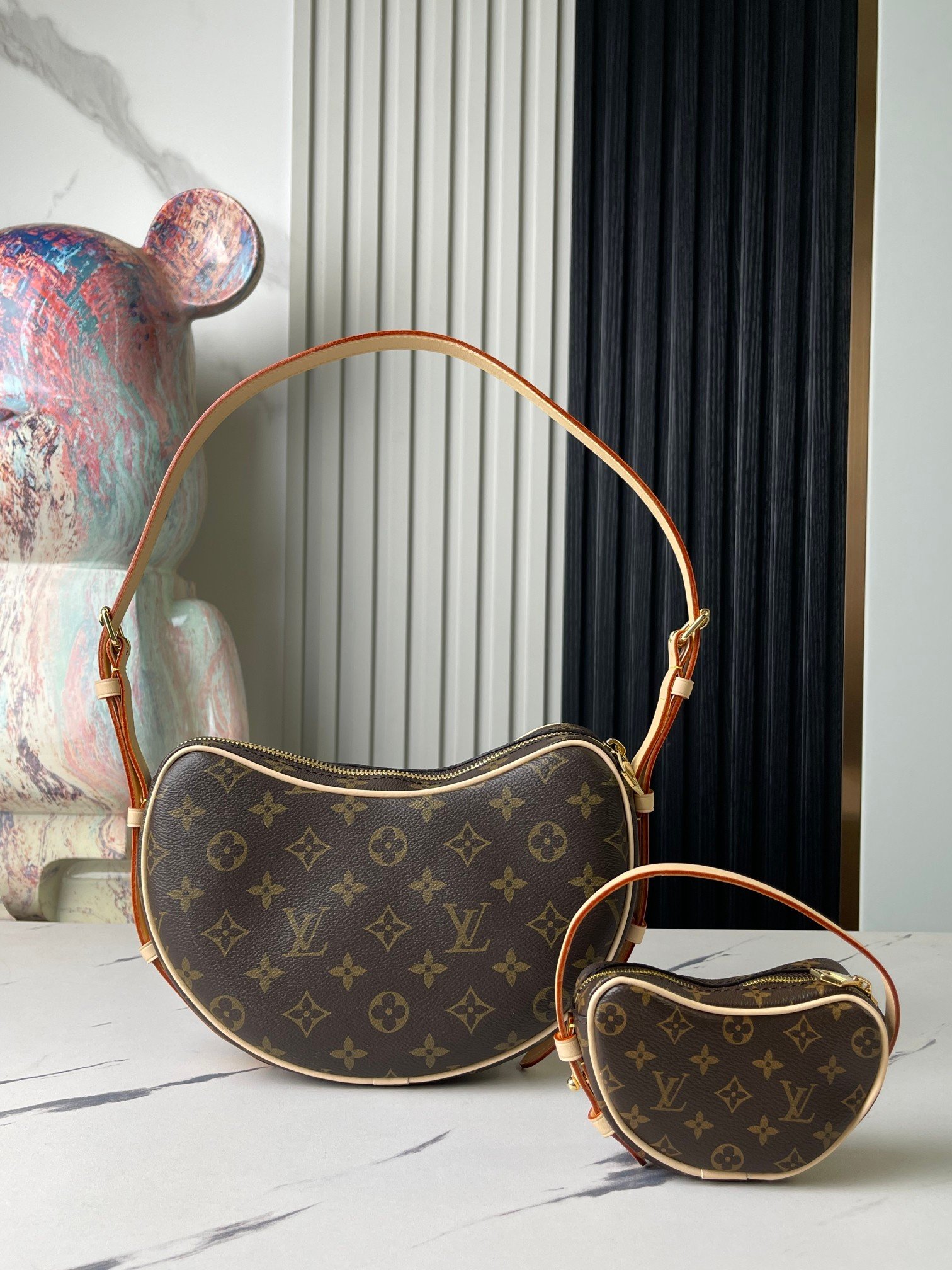 This AAAAA quality bag ✨ [Top original order, exclusive real shot] M46828 presbyopia, upgraded anti-fouling leather, bowl bean bag series Croissant MM croissant bag 2024 early spring series launched croissant bag, similar to the pea bag 20 years ago, two-piece pea bag Arc bag Underarm bag shoulder bag, small change bag can also be used as an extra pocket. Monogram Zjh classic canvas adds more lively and vivid feeling. The matching is almost absolutely perfect! Size: 21 X 7 X 5cm.